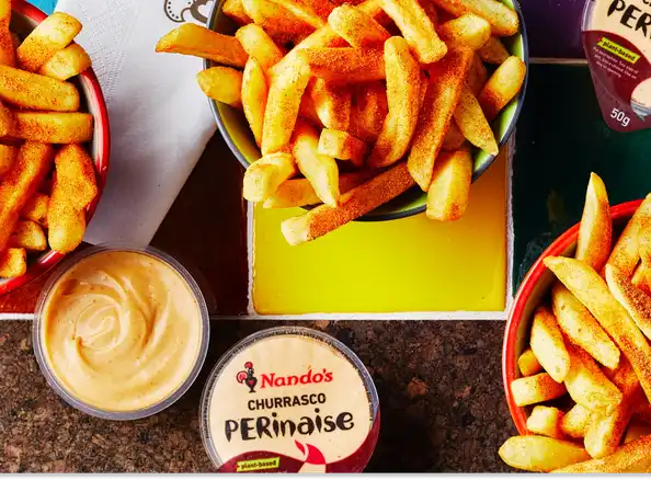 Flame-grilled, juicy, spicy... there’s a reason Nando’s chicken is legendary. We marinate our chicken in PERi-PERi for 24 hours before it’s basted. All our sauces, bastes and marinades are made with fresh, real ingredients and have no artificial flavours or colourants. We flame-grill because it reduces the fat content and regular basting is what keeps it so succulent.